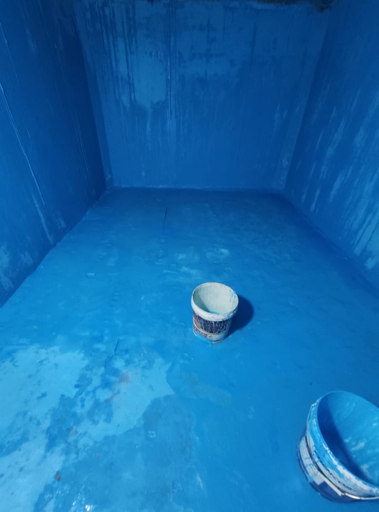- تطبيق طبقات العزل: يُطبق الإيبوكسي على الجدران والأرضية والسقف الداخلي للخزان باستخدام أدوات مناسبة، ويُراعى توزيع المادة بالتساوي لتغطية كل المساحات دون فراغات.